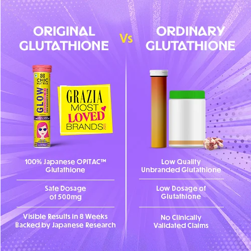 Made with the World's best Japanese OPITAC™ Glutathione, Chicnutrix Glow is your solution for achieving radiant and glowing skin. Glutathione plays a crucial role in neutralizing free radicals, reducing oxidative stress, and detoxifying harmful substances. When Glutathione levels are low, the skin becomes more susceptible to damage from UV radiation, pollution, and other environmental stressors, resulting in issues like pigmentation, dark spots, acne scars, and dull skin.