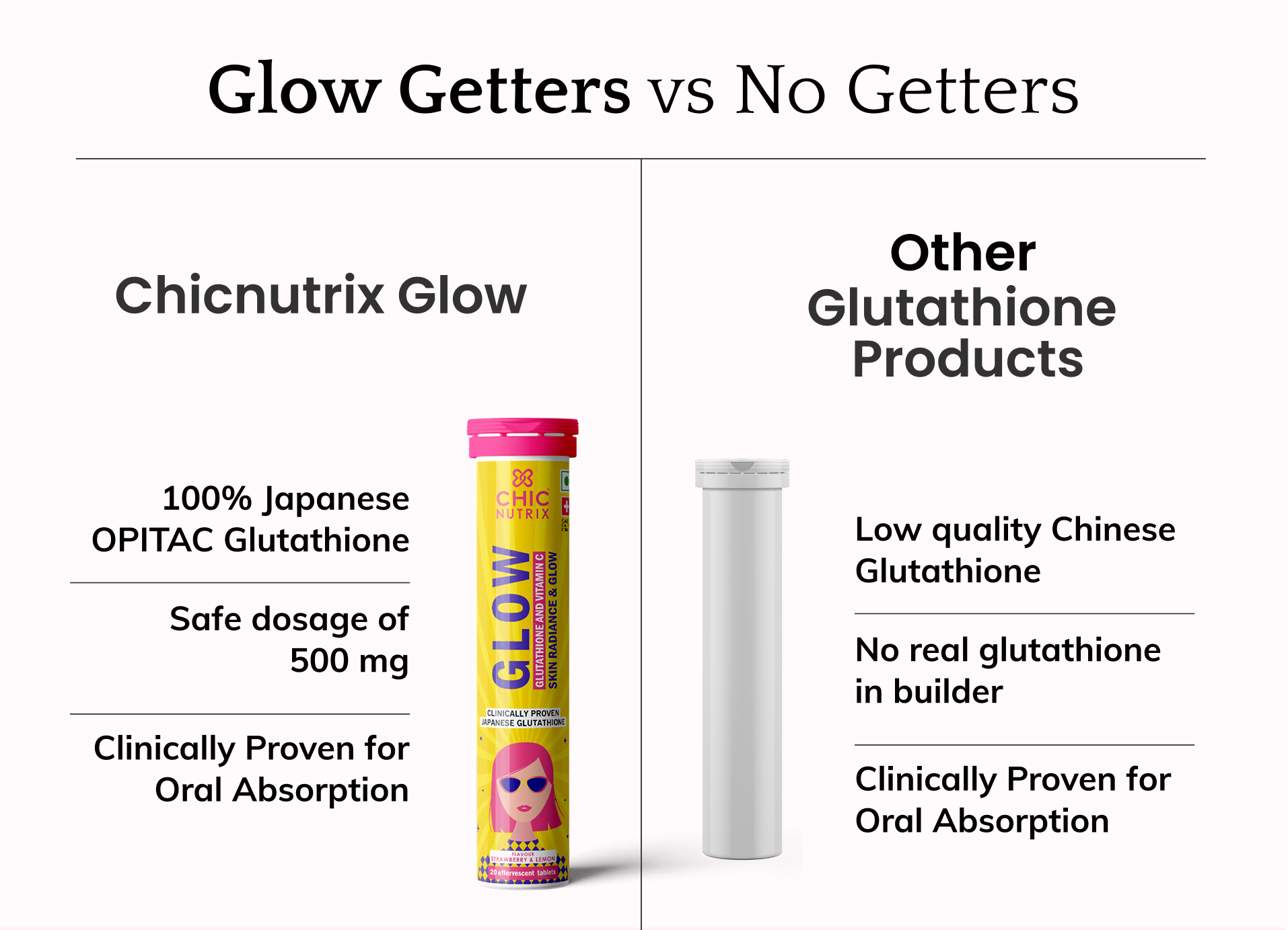 Trusted by dermatologists and clinically proven, Chicnutrix Glow has helped over 50,000 women achieve brighter skin in just 8 weeks. It is gentle on the stomach, vegan-friendly, and free from side effects, making it a safe choice for your skincare regimen."
