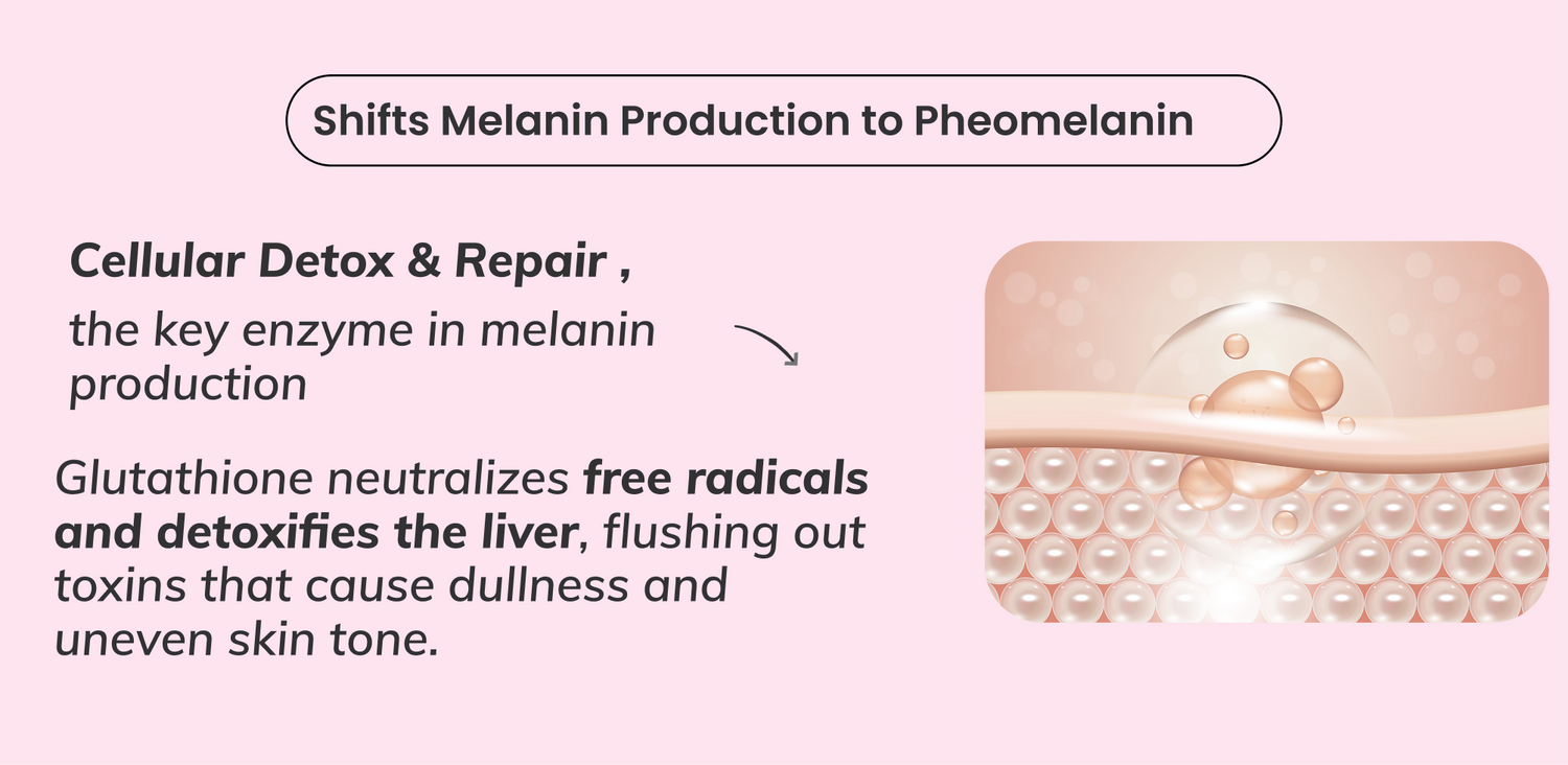 To address this, Glutathione tablets offer a convenient way to supplement your diet and maintain your skin's natural glow. However, the absorption of oral Glutathione has traditionally been a concern, particularly with lower quality products on the market. Chicnutrix Glow contains Japanese OPITAC™ Glutathione, clinically proven for its superior absorption even when taken orally. It helps inhibit tyrosine activity, reducing dull skin cells (eumelanin) while promoting bright skin cells (pheomelanin). Vitamin C is also included to enhance Glutathione absorption and efficiency.