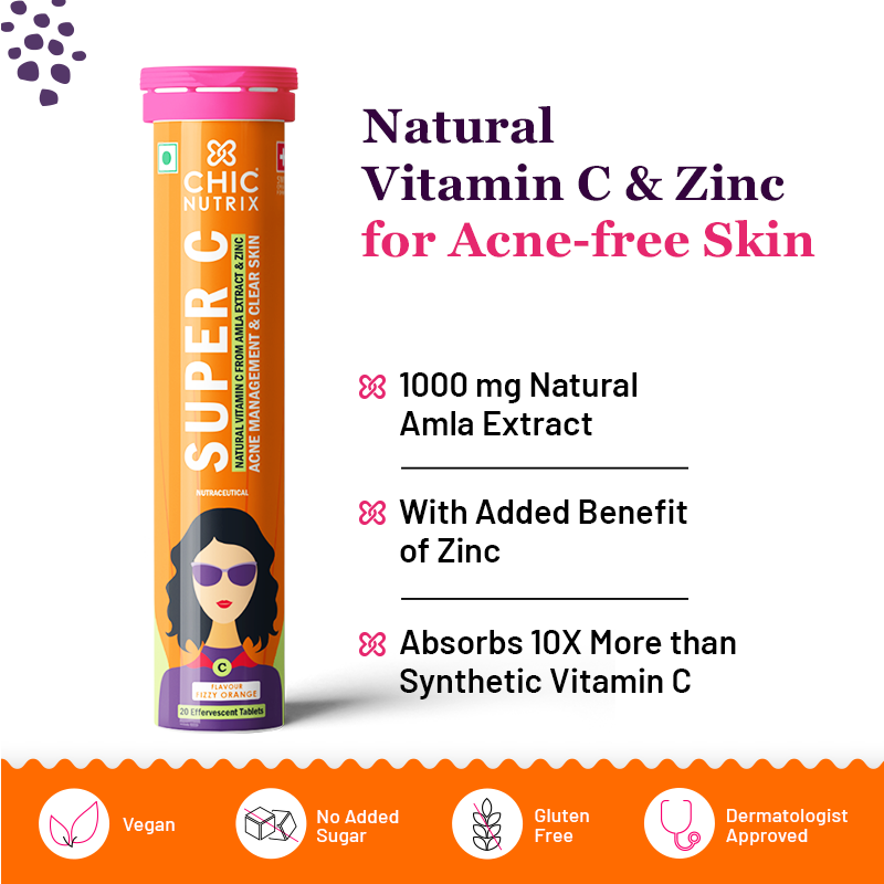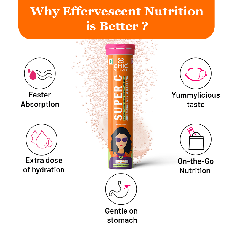 As compared to your traditional Vitamin C tablets, Chicnutrix Super C is formulated to be gentle on the stomach, while ensuring the maximum absorption, and help you meet your daily Vitamin C requirement effortlessly. If you are struggling with issues like acne, dull skin, or pigmentation, then this is the best Vitamin C tablet for skin whitening and overall skin health.